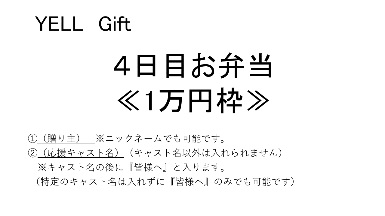 【四日目お弁当】1万円- 1枠につき御礼紙1枚